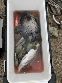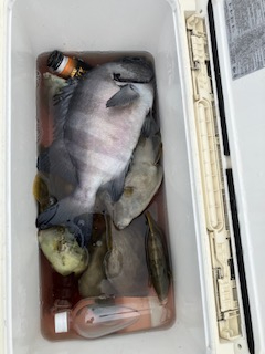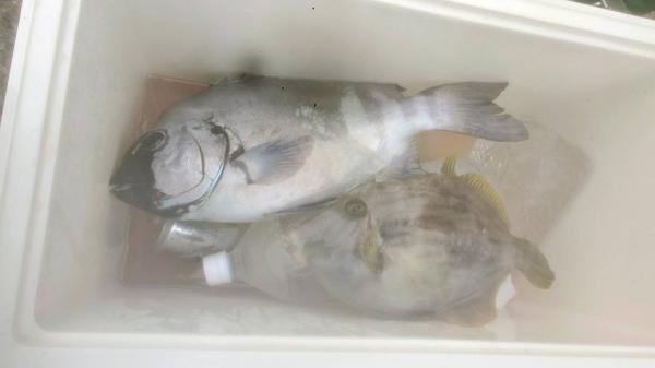 潮の変わり目に当たりありました。 何とか石鯛3枚、イシガキダイ、真鯛、カワハギなど出てくれました。 後半は、潮が速く苦戦でしたm(_ _)m