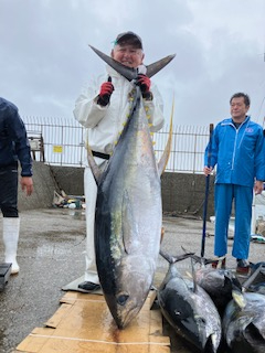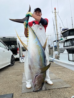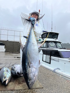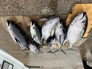 反応見れ、流し釣り主体で狙いました。 カツオの顔を見れ、キハダも当たりありましたが…針ハズレスタート。 次は水面でバラシ。 ダメかと思ったらその後も当たりあり、終わってみれば7本ゲットとハナマルでした。 最大59.85キロとモンスター捕獲できました。 他にも48キロなどm(_ _)m