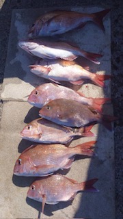 15号船…真鯛五目に出船しました。 潮の変わり目に真鯛・イナダと顔を見れました。 何とかトップ3枚ゲットでした。