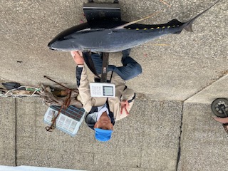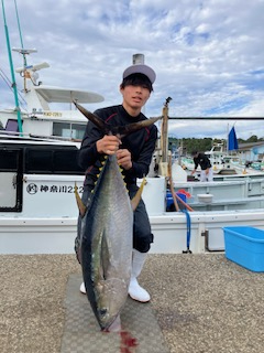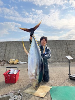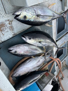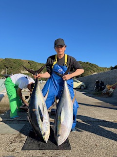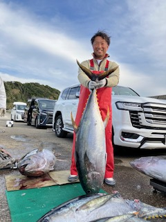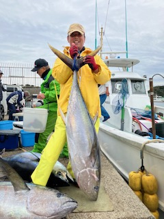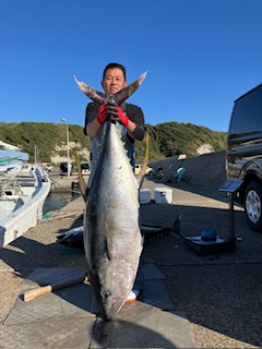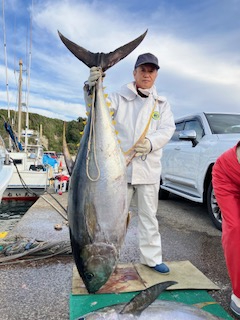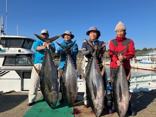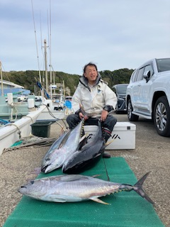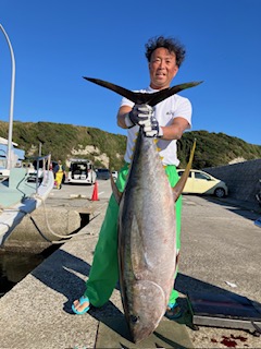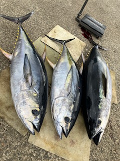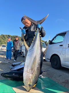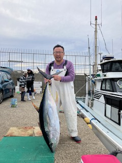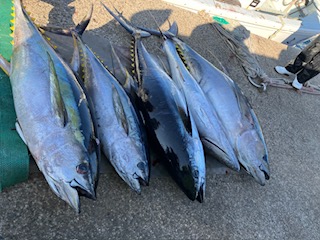 流し釣り主体で狙い、前半から反応ありました。 水面バラシもありましたが、何とか4名さまで4本ゲットでした。 最大61キロ、40アップ2本、26キロでしたm(_ _)m