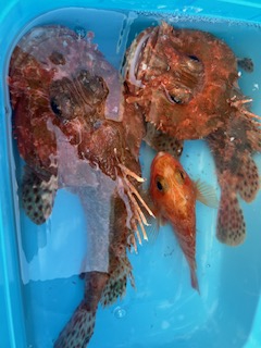 前半はヤリイカを狙い、何とか拾い釣りで皆さん顔を見れトップ9杯でした。 中盤から鬼カサゴへ。