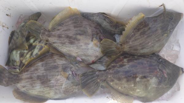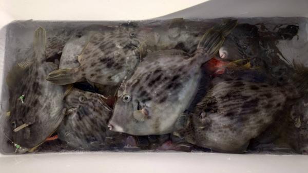 前半はカワハギの顔を見れただけでしたが…潮の変わり目に当たりあり、何とか2枚顔を見れましたm(_ _)m