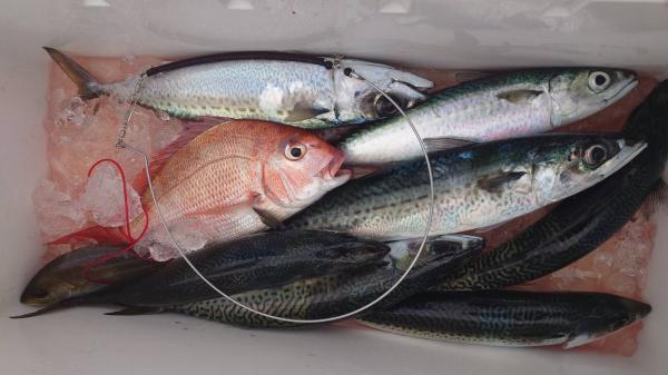 前半に真鯛・イナダと顔を見れました。後半にも真鯛・サバなど出てくれ、トップ2枚ゲットでしたm(_ _)m