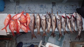 前半からキンメ・黒ムツと顔を見れました。 中盤からは黒ムツ主体で当たりあり、皆さんクーラー賑わいましたm(_ _)m