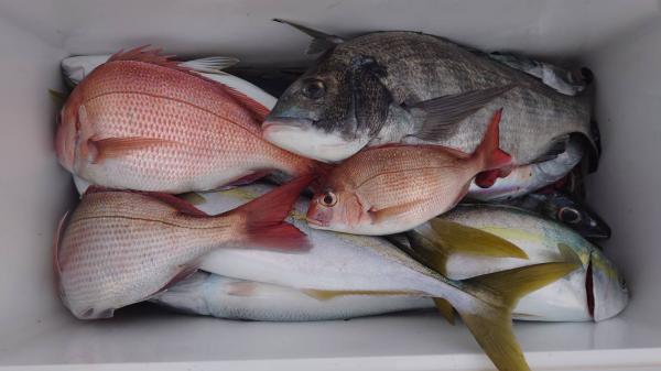 15号船…真鯛五目に出船しました。 潮の変わり目に当たりありました。 バラシもありましたが、トップ3枚ゲットでしたm(_ _)m